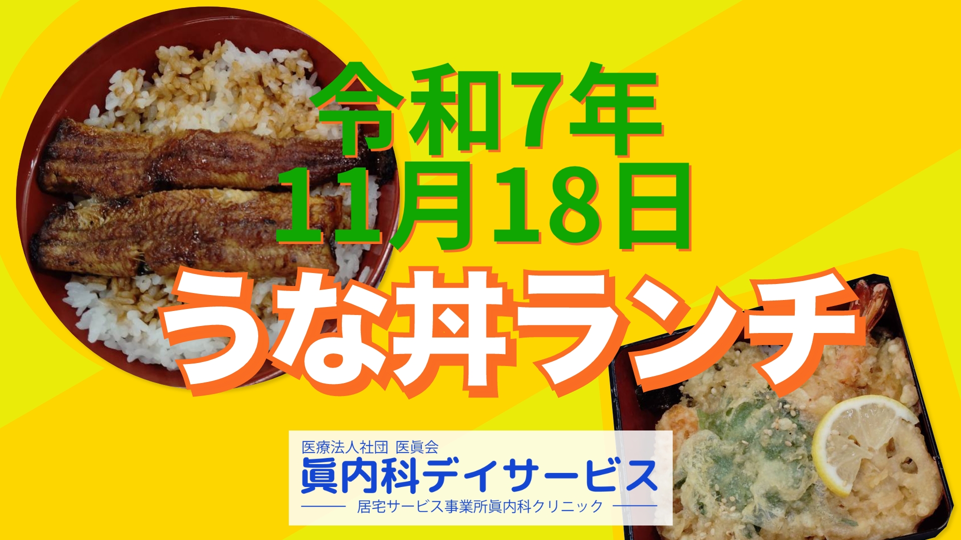 ホーム  >  デイサービスのお知らせ  >  令和7年11月18日(火) 川京うな丼出前ランチのお知らせ