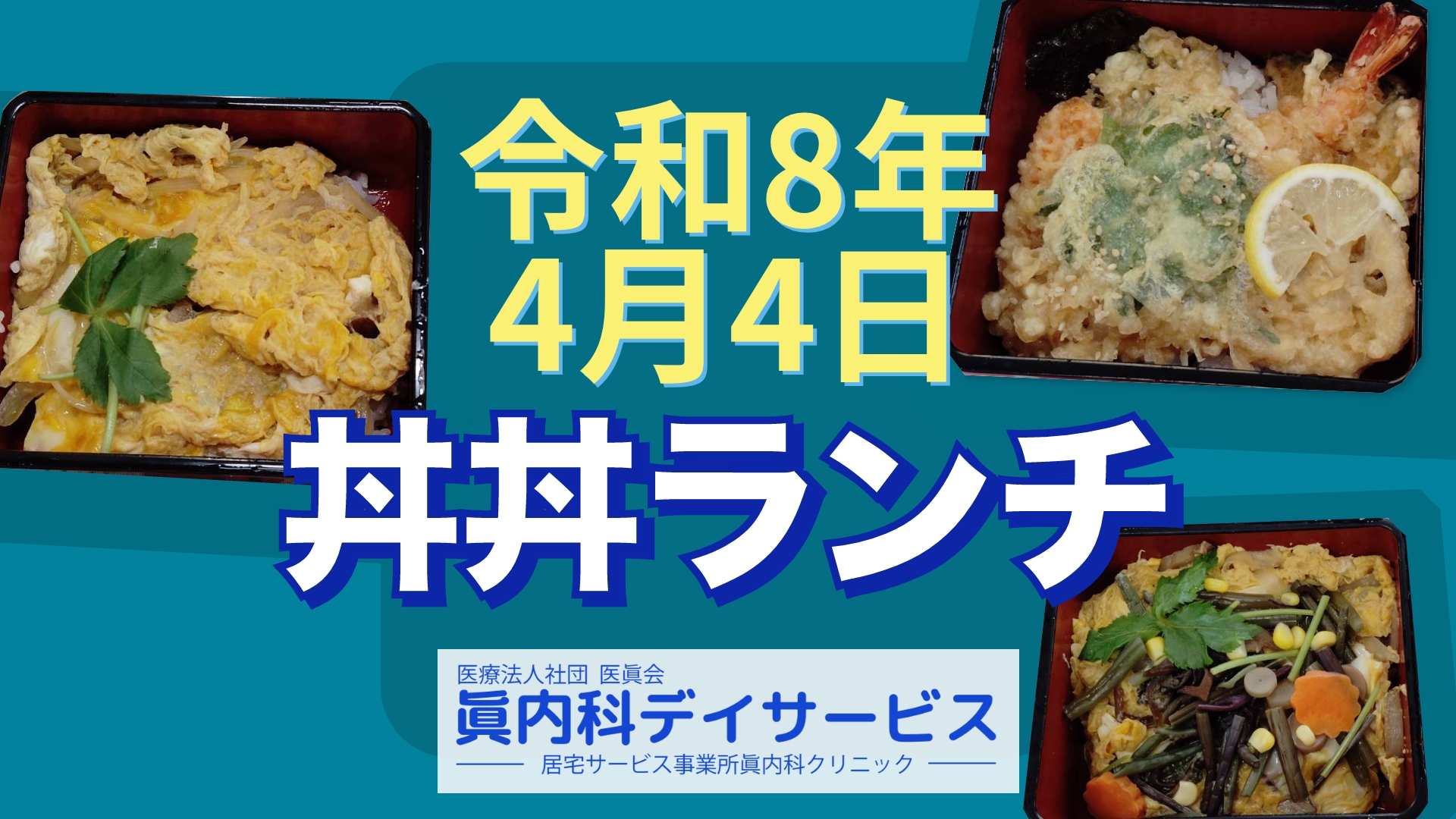 ホーム  >  デイサービスのお知らせ  >  令和8年4月4日(土) 福寿亭丼丼出前ランチのお知らせ